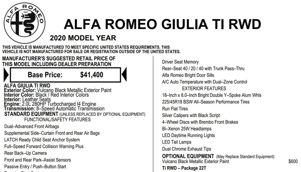 Discover the perfect blend of style, performance, and technology in this stunning 2020 Alfa Romeo Giulia Ti. With its sleek black exterior and feature-packed interior, this vehicle is a true standout on the road.