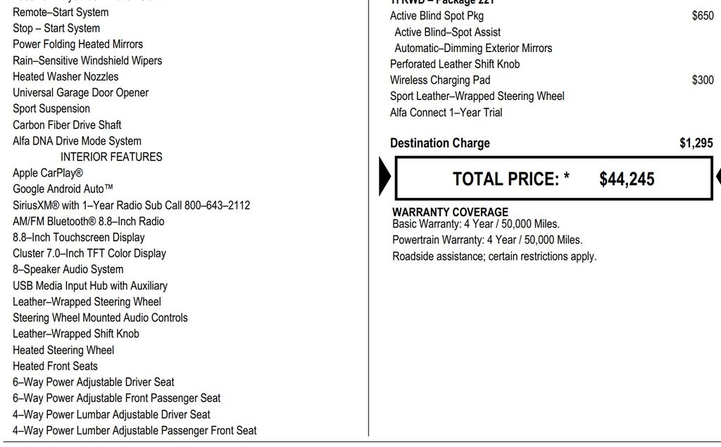 I’ve had my Guilia for almost 3 years. It’s a great car. No issues at all. It’s fun and powerful and beautiful inside and out. Drives great in all weather with AWD. - 5.0