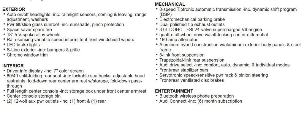 I've had it for two years and I've never seen a car depreciate so slowly, it's almost at the same price I bought it (3.0 Prestige model). It has all the bells and whistles you may need. Parts aren't cheap but it's one and done, don't have recurrences or have to buy several parts when you are just replacing one thing, like in some Porches. Amazing gear shifting, very responsive paddle shifters, powerful engine and torque for days with the Quattro option, the performance will definitely shock you!