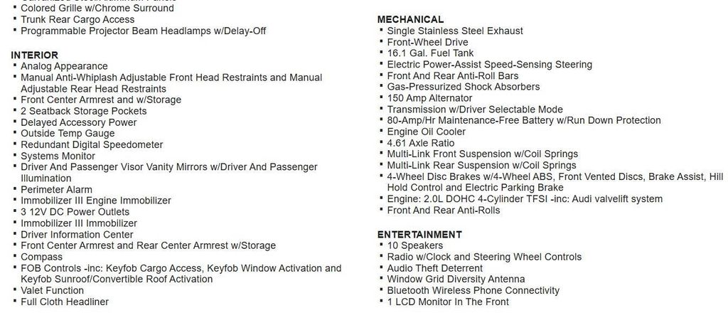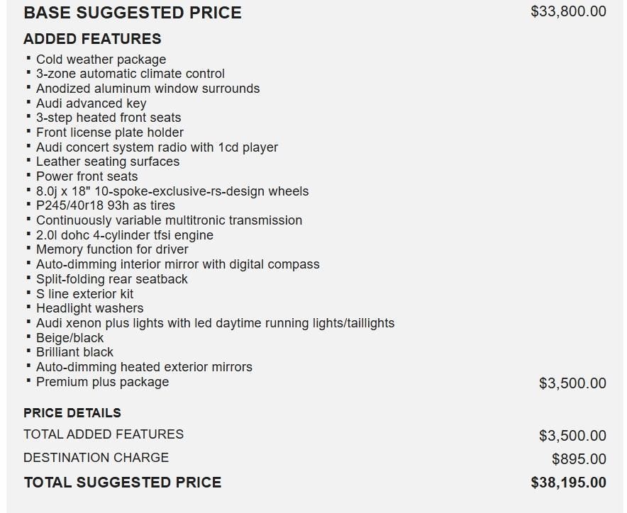 Has been a decent vehicle . Has not been a issue like so many reviews I have read on this vehicle . I guess I'm one of the lucky ones out there . It is very peppy . Just wish I could get rid of the hesitation at take off . The only way I have found to do that from a stop is to put your foot on the gas peddle so it is already pulling some so that when you do take off it really goes . I recently purchased a 2001 Grand Marquis from a elderly friend that can no longer drives and it took me a bit to get use to the instant throttle response it has . I have to be careful or I'm lying rubber every time I take off . The Audi is peppy and has great brakes . Very good stereo as well . It is a tight ride which is good for corners . I don't regret buying it but I did buy it used . I'd not be as happy if I had purchased it new I can tell you . Repairs are insane . So I just try and do most of them myself . - 1.0