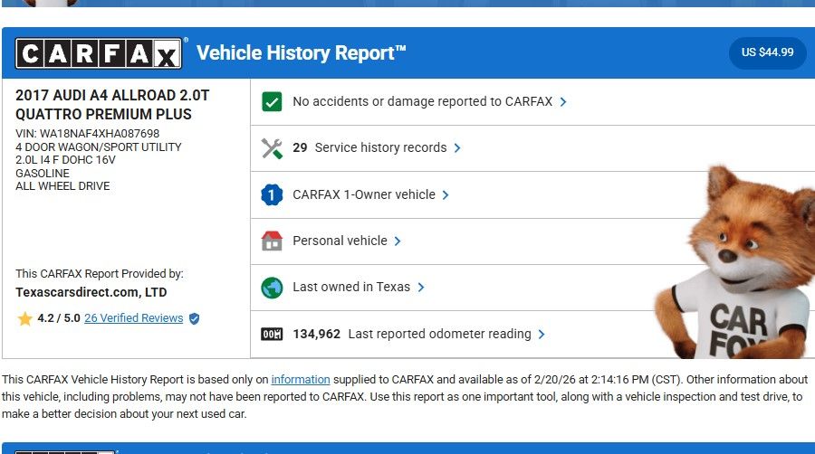 Powered by a 2.0L 4-Cylinder TFSI DOHC engine and paired with a 7-Speed Automatic S tronic transmission, this A4 allroad delivers an exceptional blend of power and efficiency, achieving an impressive 23 city / 28 highway MPG.