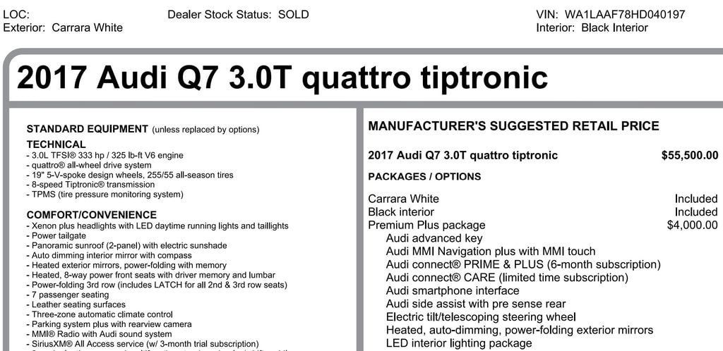 2017 Audi Q7 3.0T Premium Plus Quattro