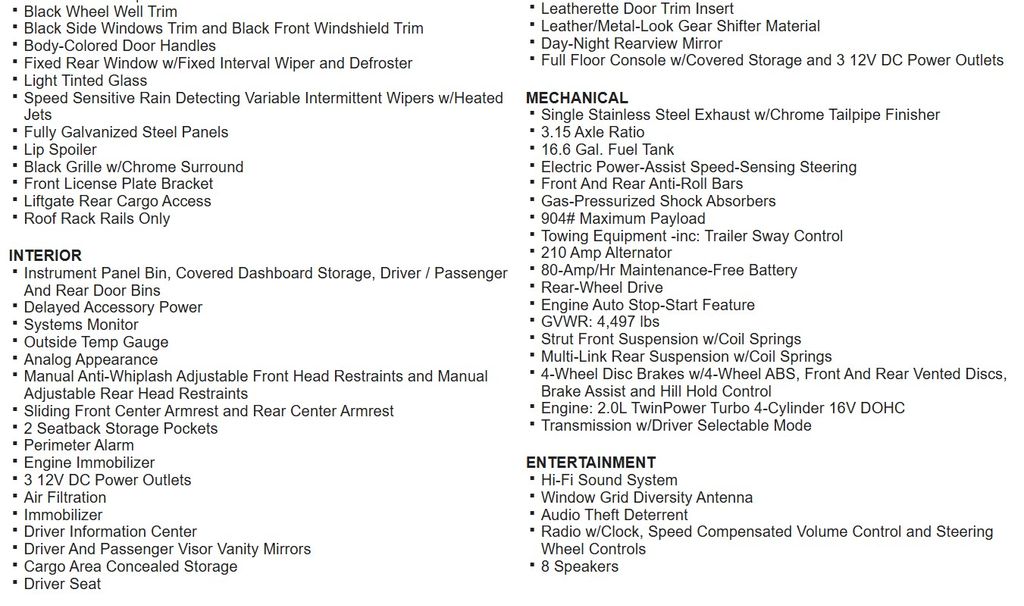 Great small SUV. It has lots of power and steers and handles like a sports car. Good mileage 24 in town 30-33 on highway. I am 6-2 tall and there is plenty of driver room for me. Turbo engine has great acceleration! Have 56,000 miles on vehicle with no repairs and still has original brakes. Nice standard stereo with eight speakers and Bluetooth. Winter package with comfort heated seats and steering wheel. Replaced run-flat tires with a better quality non-run-flat set for a more comfortable ride. No key entry and starting is also very convenient. Handles great in snow with all wheel drive and also has a four wheel lock when stuck in deep snow just to get going. It does not lock for on the road driving. A little small inside but FUN car to drive!!!! - 5.0