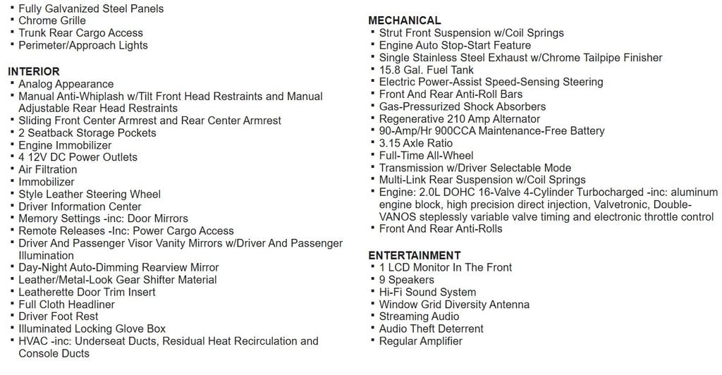 - Engine horsepower: 240hp @ 5,000RPM