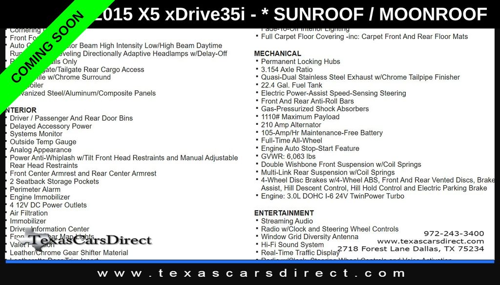 Discover the perfect blend of performance, luxury, and style with this exceptional 2015 BMW X5 xDrive35i. This stunning SUV boasts a commanding presence on the road, complemented by a host of premium features that elevate the driving experience.