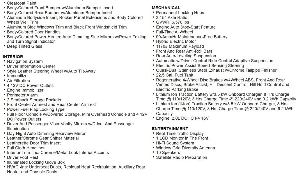 - Hybrid traction battery electric + ICE total range: 540 miles