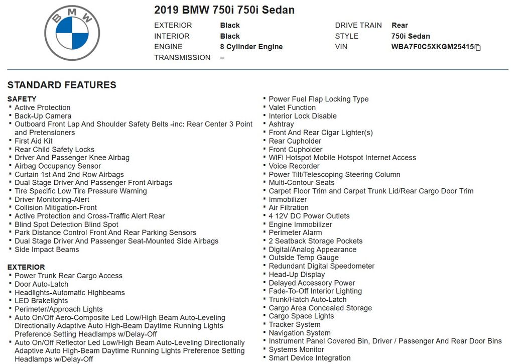 Without a doubt the 750i Drive Sedan is the finest car I have ever driven. Smooth agile and very, very quick. We have the Executive Lounge Seating Pkg. and both my wife and I enjoy it especially on long trips. The interior cabin is a wonder with the best quality everything. It even has a scent system so outside oders are a thing of the past. The safety features are outstanding. Cross traffic or toots in back of the car give a warning and stops the car. The vibrating seats are another outstanding feature that we fully enjoy. The voice activated Navigatioin system is so simple, Simply talk into it and it guides you where you commanded. It is simply a wonderful car and you wouldn be lucky to own. - 5.0