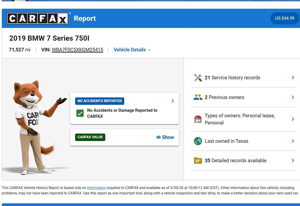 We offer free Carfax vehicle history reports on our website.