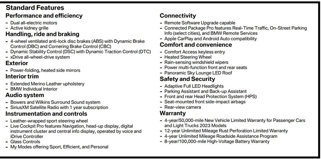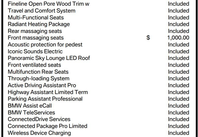 Elevating your driving experience even further, this i7 is equipped with the Driving Assistance Professional Package, offering cutting-edge safety and convenience technologies like Highway Assistant, Active Cruise Control, and Active Lane Keeping Assistant. The Luxury Rear Seating Package indulges your passengers with rear massaging and ventilated seats, while the Parking Assistance Package ensures effortless maneuvering with Parking Assistant Professional and Surround View with 3D capabilities.