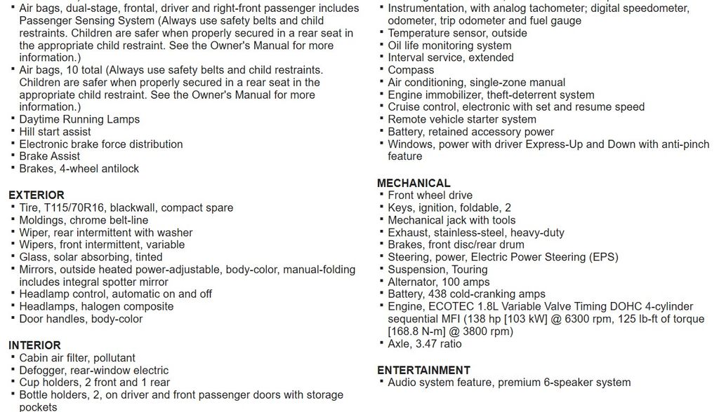 ⢠ECOTEC 1.4L I4 Turbocharged engine with 138 hp and 148 lb-ft of torque