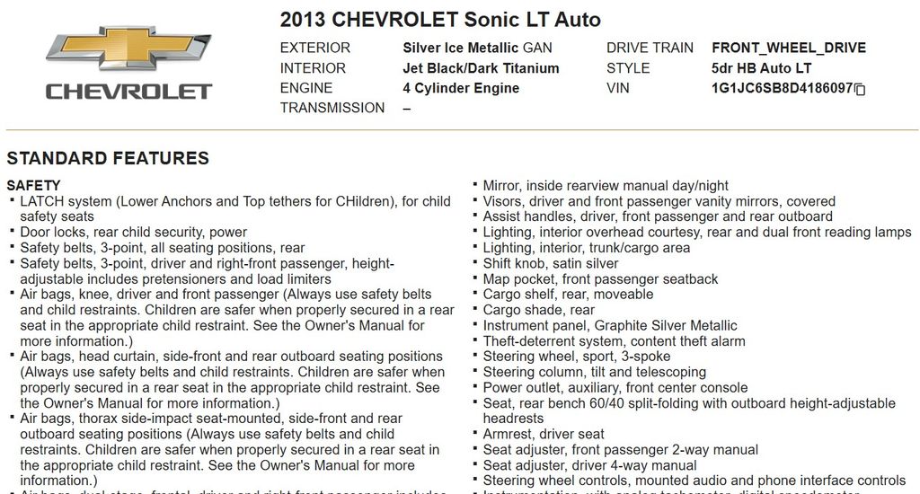 I have been in a family of Chevrolets and I 've owned 2 Dodges before this. I originally wanted another dodge but I wanted a more fuel efficient vehicles and dodge doesn't offer much in that department so I opted for the Chevy sonic. Biggest mistake ive ever made... I have already with owning this car since July 2017 replaced: Head gasket, Valve gasket, Valve cover, Radiator, Rotors, and know have a battery issue (possibly alternator with my luck so far with this car) not sure yet and a coolant leak somewhere...this car runs terribly. If you come up to a stop light on red (your braking to the light) and the light turns green while your still braking, you need to let off the gas for a few seconds then gradually touch the gas or it will stall, you can't just hit the gas and go... Has a lot of vibration, not sound proof tons of road noise, has no get up and go if you lay on the gas it spits and splitters and barely moves. Ive had the oil changed, air filter changed, seafoam fuel treatment, Lucas added to the oil, nothing has gotten this thing to run better. I wish I could give it back but I owe 5 yrs on this car still. That and when my warranty expired Chevy refused to give me an extended warranty without having the head gasket inspected ironically 7 days later the head gasket went. Do yourself a favor and pass on this car I'm telling you it's not worth the money get something else...