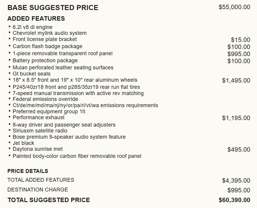 Ownership experience has been great with the car. Very reliable, great performance and a lot of bang for the buck. I gave 3 stars for comfort…getting in and out requires a bit of athleticism, and the ride can be a little stiff on bad roads. Hey, it's a sports car, not a posh luxo boat! Highway gas mileage around 30 MPG on long ventures! Trading it in for a new C8! - 5.0