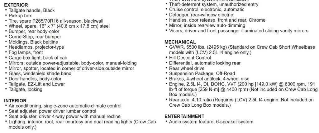 Never really liked the Colorados or its cousin over at GMC. Drove full size trucks all my life pretty much, but never really needed all the truck. When these came out a few years back they started to grow on me because they were a little bigger than the first generation. Was about to buy my 5th full size truck and started talking about these fun little trucks with my sales guy. They brought around this nice little truck (they specialized in lifted trucks or full-size OEM ,if you would) with all the accessories. Hard tonneau cover, 4x4, wheel package, LT, V6, Magnaflow exhaust, chrome trim, leather interior & a few other goodies I installed afterwards. Moves like a bat out of hell! Really fun to drive! Easily light up both back tires and get smokey pretty quick too! Perfect city truck, but also enough truck to handle the "great outdoors".