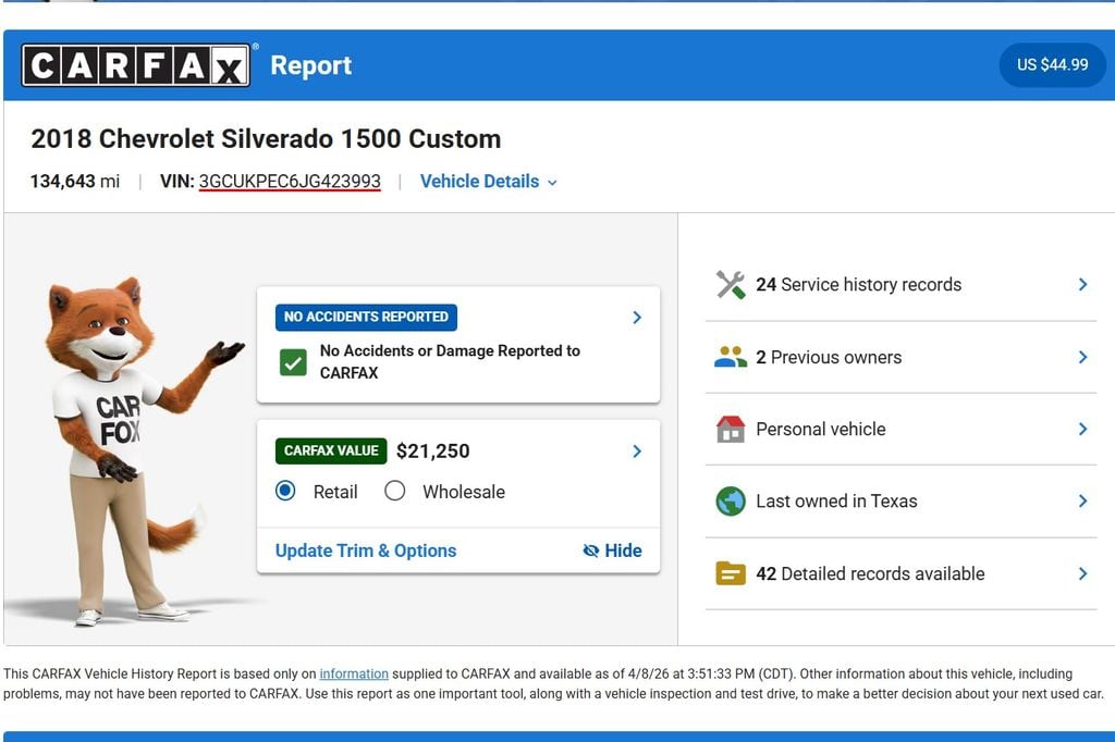 We offer free Carfax vehicle history reports on our website.