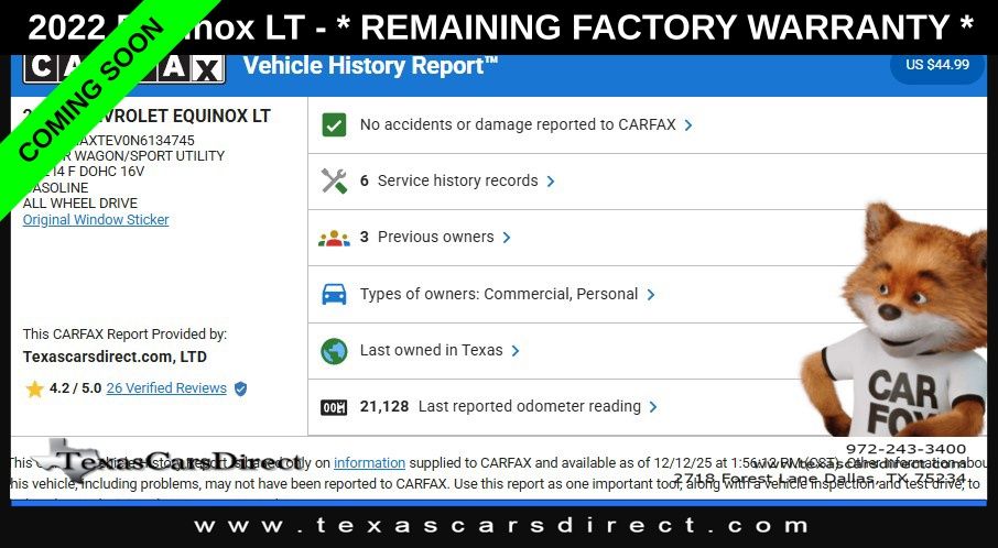 2022 Chevrolet Equinox LT Clean Carfax/AWD/LOW Miles