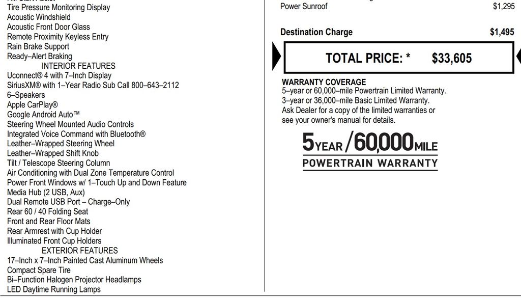 - Wireless phone connectivity: Uconnect w/Bluetooth