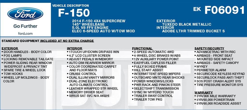 Elevating the driving experience, this Lariat model is equipped with a suite of premium features, including a Sony single-CD player with HD radio, high-intensity discharge headlamps, and a power moonroof. The Lariat Plus Package adds even more convenience with a reverse sensing system, power-folding heated side mirrors, and a trailer brake controller.