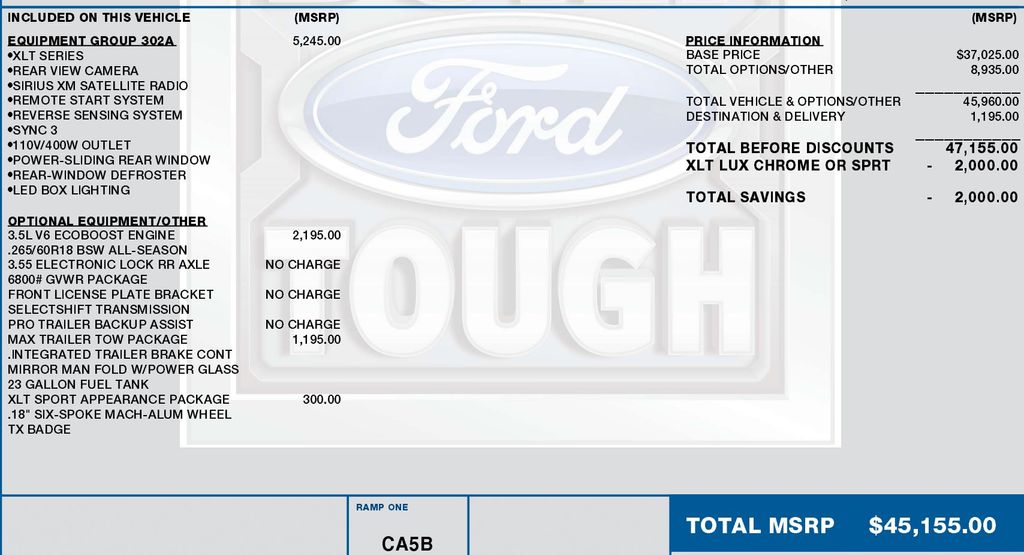 Sale Price plus TCD Advantage Program ($995) protecting your vehicle wheels against curb rash, windshield cracks, chips, or up to $500 toward replacement, interior stains and tears, exterior paint protection against environmental hazards, paintless dent repair, and roadside assistance!