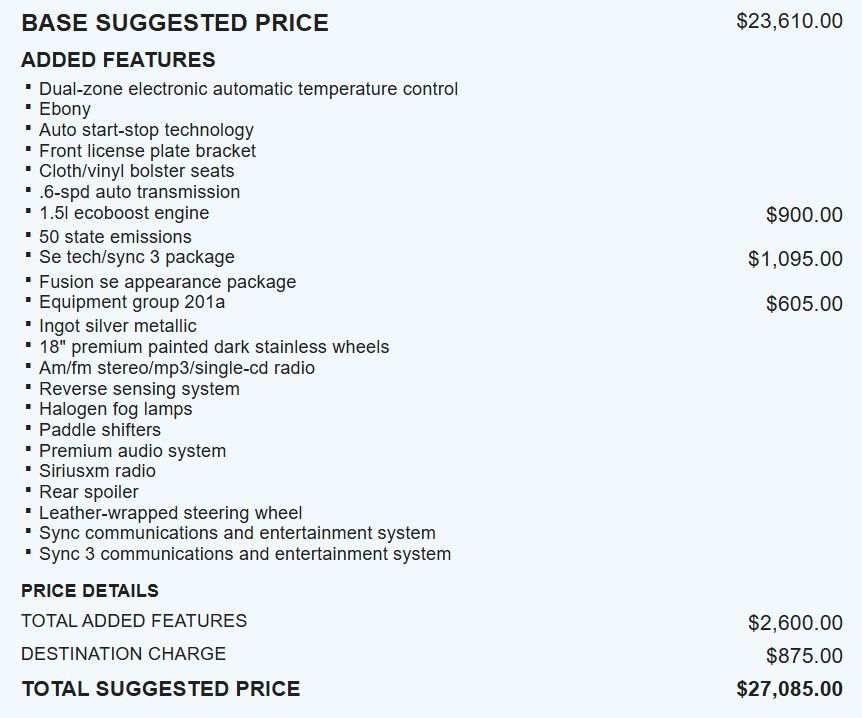 I had bought one in 2018, and within two weeks without knowing it, my mother and father had bought one that had more bells and whistles, and my son had also bought one that was actually a 2016 and bought it used. I ended up getting my dance as well after he passed so we have three white hybrids altogether, not including light song who bought one because I bought my other son that SUV hybrid from Ford. So I get about 40 miles per gallon on this hybrid which I would never go fully electric. We’ve bought things on auction and the battery for a fully electric car are so insanely high. The bottom line is that Ford has quit producing the Fusion. It’s such a big loss for us because my husbands Fusion has packed on the miles due to his drive to work, which is why we bought ours in the first place. 2 1/2 hrs one way. I’m praying Ford sees what many of us want. They also downsized their trucks. I want a 350-550 or 3500-5500 depending on the vehicle. I am a truck gal. The only other vehicle I love that was a car, was the 1986 Chevrolet Convertible Cavalier. When you started it up the engine would roar. The convertibles these days feel too smooth and too quiet. I like to hear the power like in my truck. - 5.0