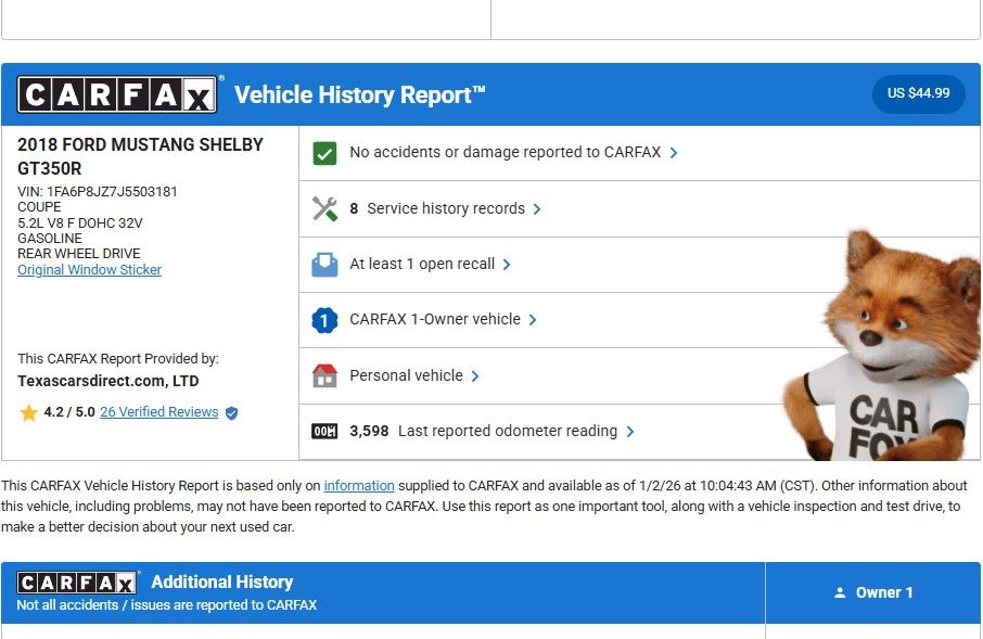 2018 Ford Mustang Shelby GT350 Coupe/LOW Mile 1-Owner Clean Carfax/6