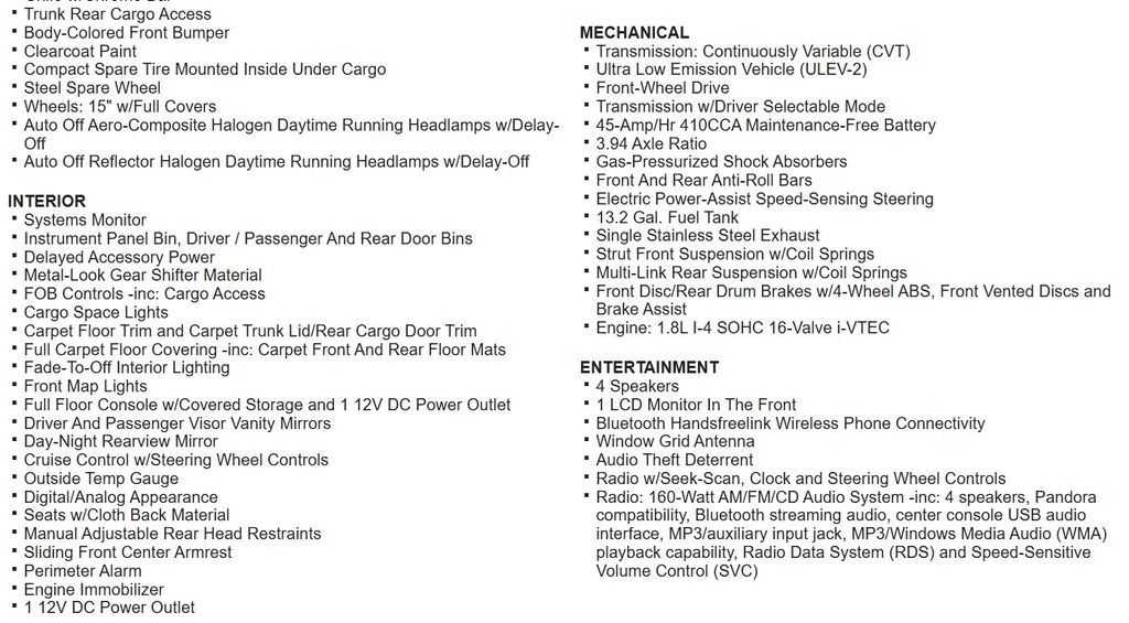 - Transmission: continuously variable automatic