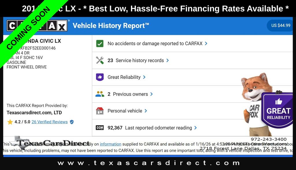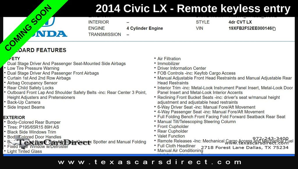 $12,708$11,713 Texas Cars Direct Price