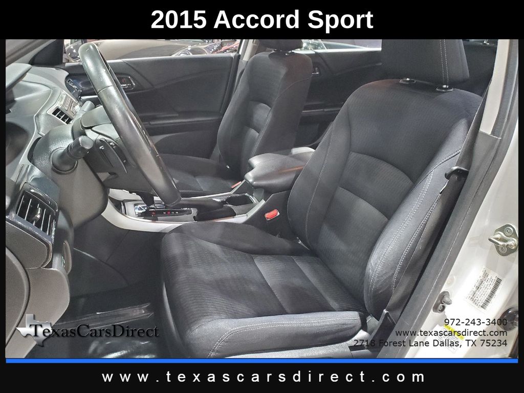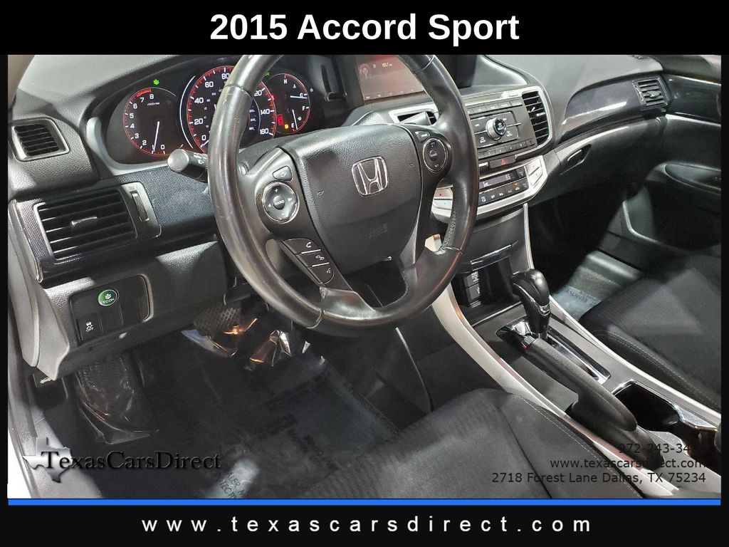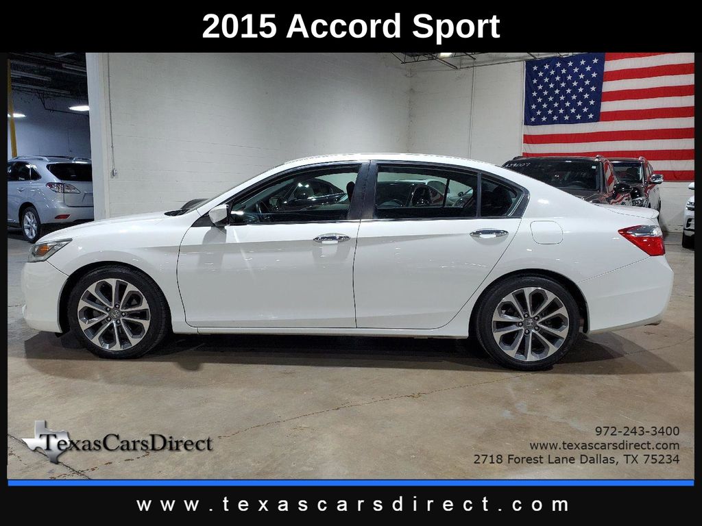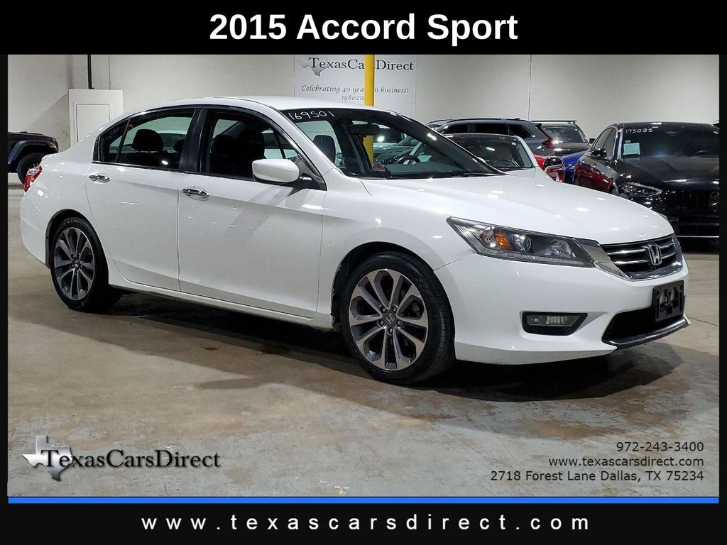 This 2015 Honda Accord Sedan Sport, has White Orchid Pearl exterior and Black interior color. 163,489 miles. Stock Number 169501. You can connect with us by calling 972-243-3400.