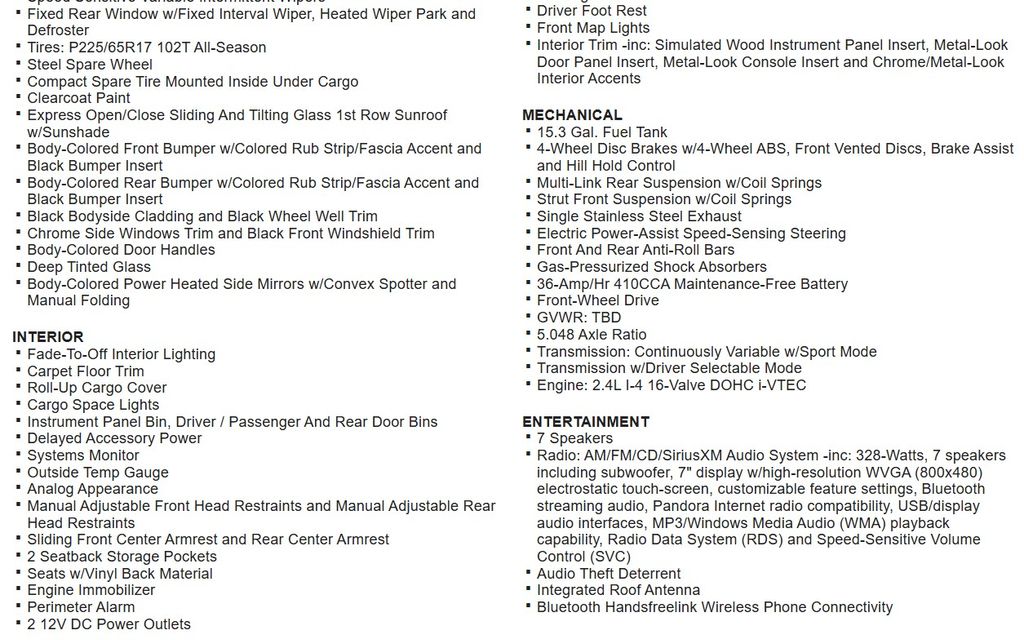 Elevate your commute or weekend adventures with the impressive performance of the 2.4L i-VTEC engine, delivering an exceptional 26 city/33 highway MPG.