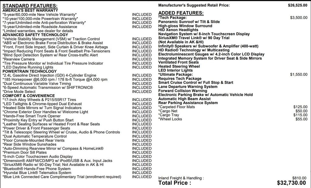 Equipped with a powerful 2.4L 4-cylinder engine and a smooth-shifting 6-speed automatic transmission, this Sonata Limited delivers an impressive 24 mpg in the city and 35 mpg on the highway, making it an exceptional choice for the savvy driver. The advanced technology package includes cutting-edge safety features like Forward Collision Warning, Lane Departure Warning, and Automatic High Beam Assist, ensuring a confident and secure driving experience.