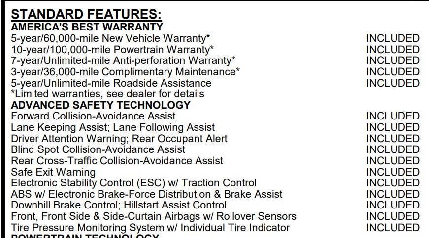 - Forward collision: Forward Collision-Avoidance Assist (FCA) w/Pedestrian, Cyclist & Junction-Turning Detection mitigation w/left turn assist