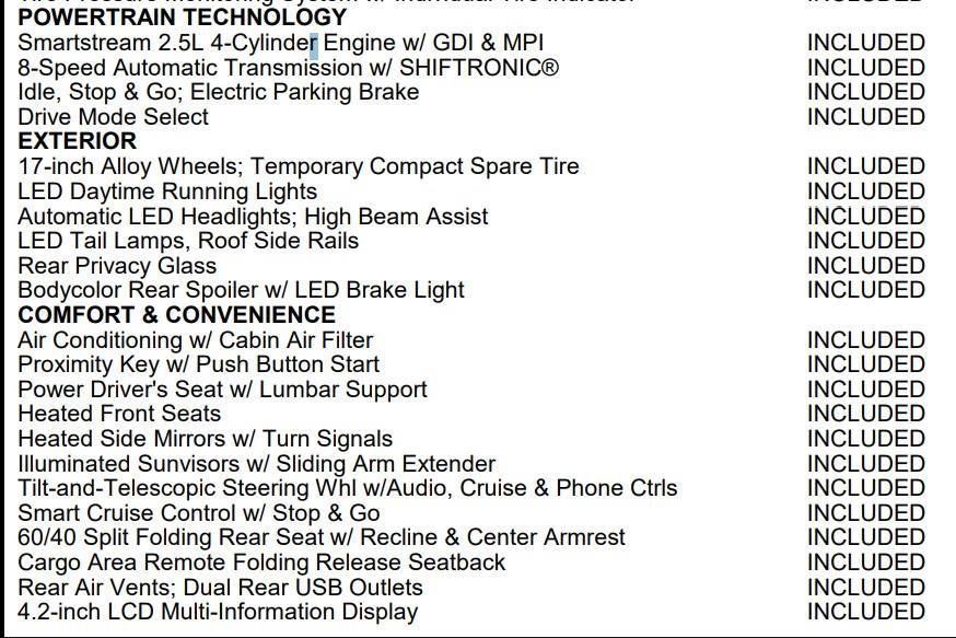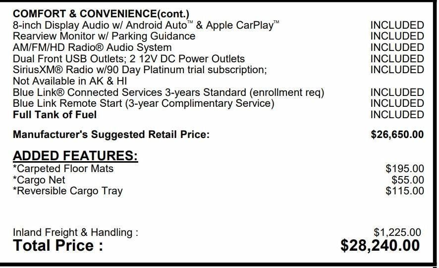 - Tracker system: Blue Link Connected Car Service (3-year complimentary subscription)