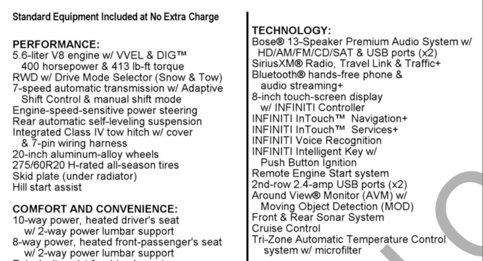 - Navigation system: INFINITI InTouch Navigation