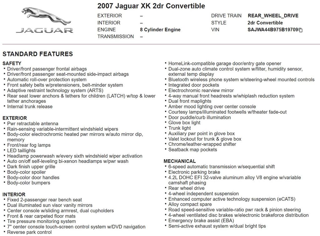I've had the pleasure of owning my 2008 Jaguar XKR for over ten years now and still get compliments and head turns at it's beauty. I have had NO major breakdowns or repairs! Hailed as one of the premier car designs of all times this car's designer influence is still present in so many cars you see on the road today. The cars performance with it's dual superchargers deliver instant acceleration at all levels of the power band. That it is still respected and admired is mind boggling and I look forward to when the collector's interest begin to peak... as this is a one in a lifetime classic automobile!