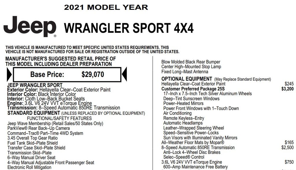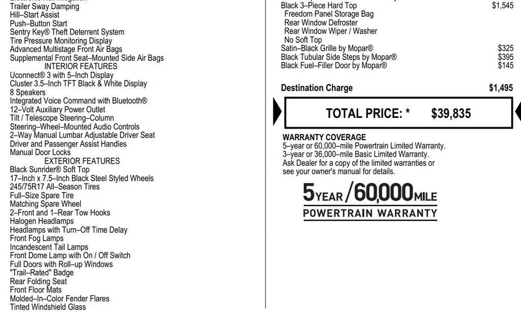 The Wrangler Sport S comes equipped with a host of premium features, including: