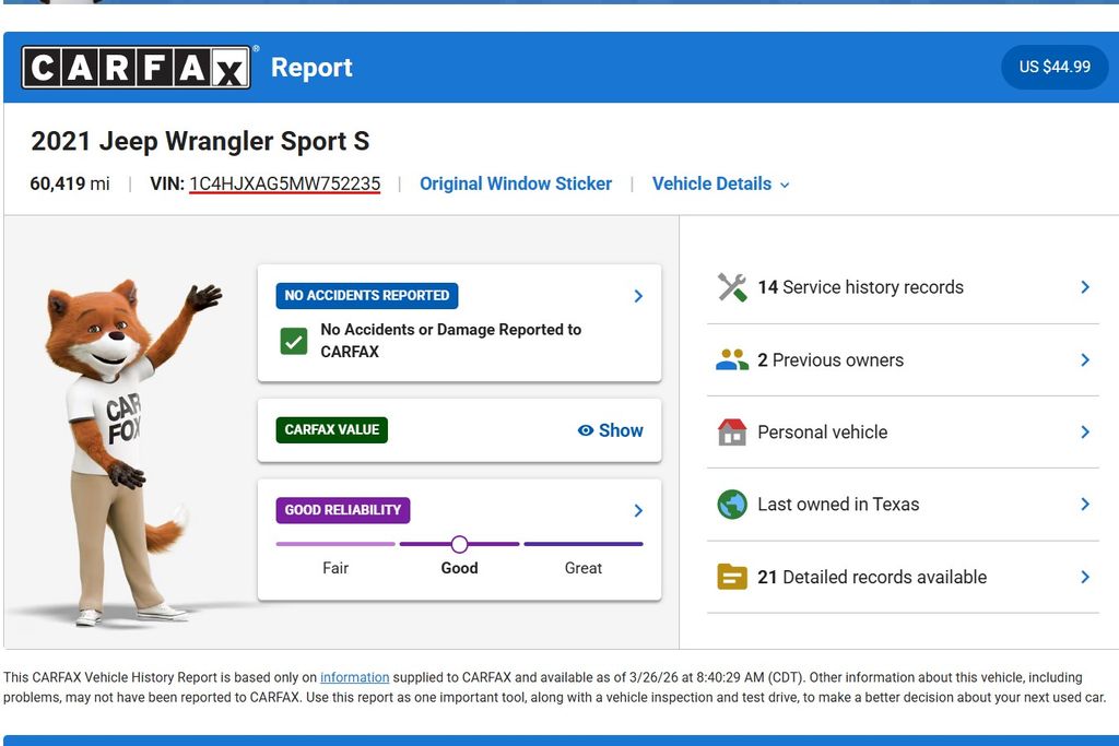 Experience the thrill of the open road and the freedom of the great outdoors in this exceptional 2021 Jeep Wrangler Sport S 4WD. With its impressive capabilities and premium features, this Wrangler is ready to elevate your adventuring experience to new heights.