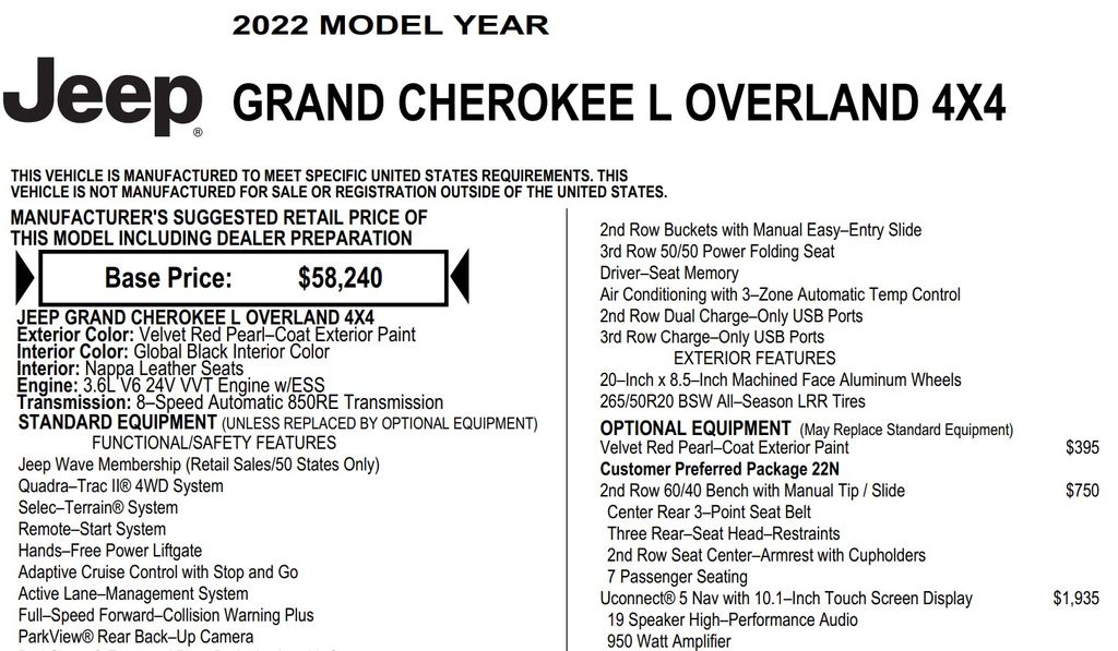 With its exceptional combination of style, performance, and technology, this 2022 Jeep Grand Cherokee L Overland is a true standout in its class. Experience the pinnacle of luxury and capability â" come in and take it for a test drive today.