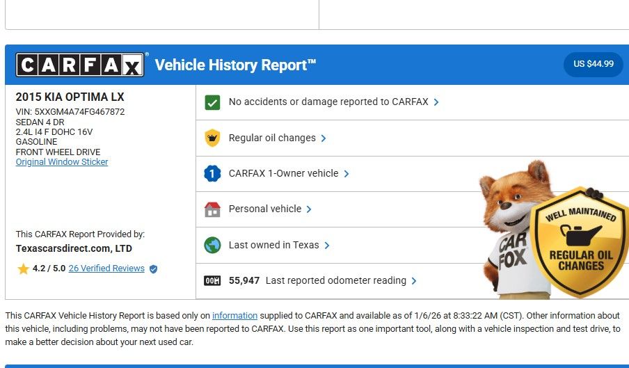 2015 Kia Optima LX LOW Mile 1-Owner Clean Carfax/Just Serviced