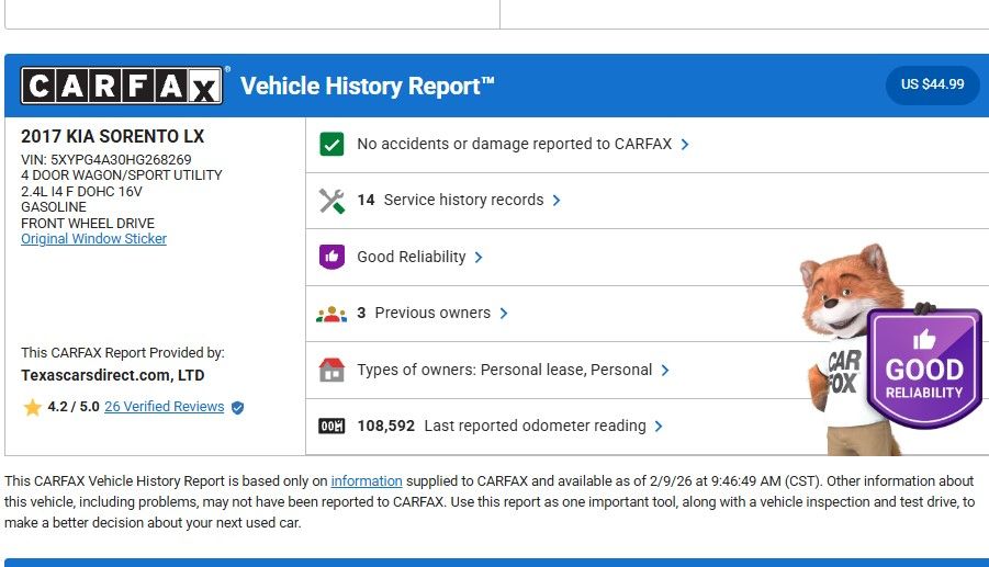 The spacious interior offers seating for up to seven, thanks to the available third-row. Versatile and family-friendly, this Sorento LX is the perfect companion for your adventures. Enjoy the convenience of the rearview camera, the comfort of heated front seats, and the peace of mind that comes with a CLEAN CARFAX report.