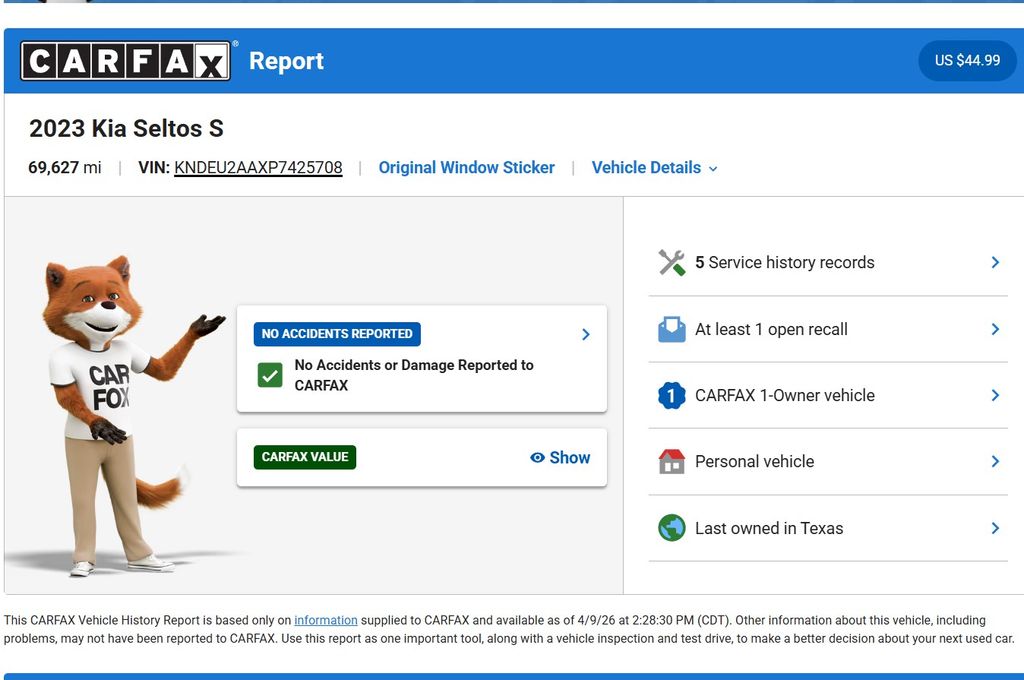 2023 Kia Seltos S Clean Carfax/Apple-Android/Camear/35MPG