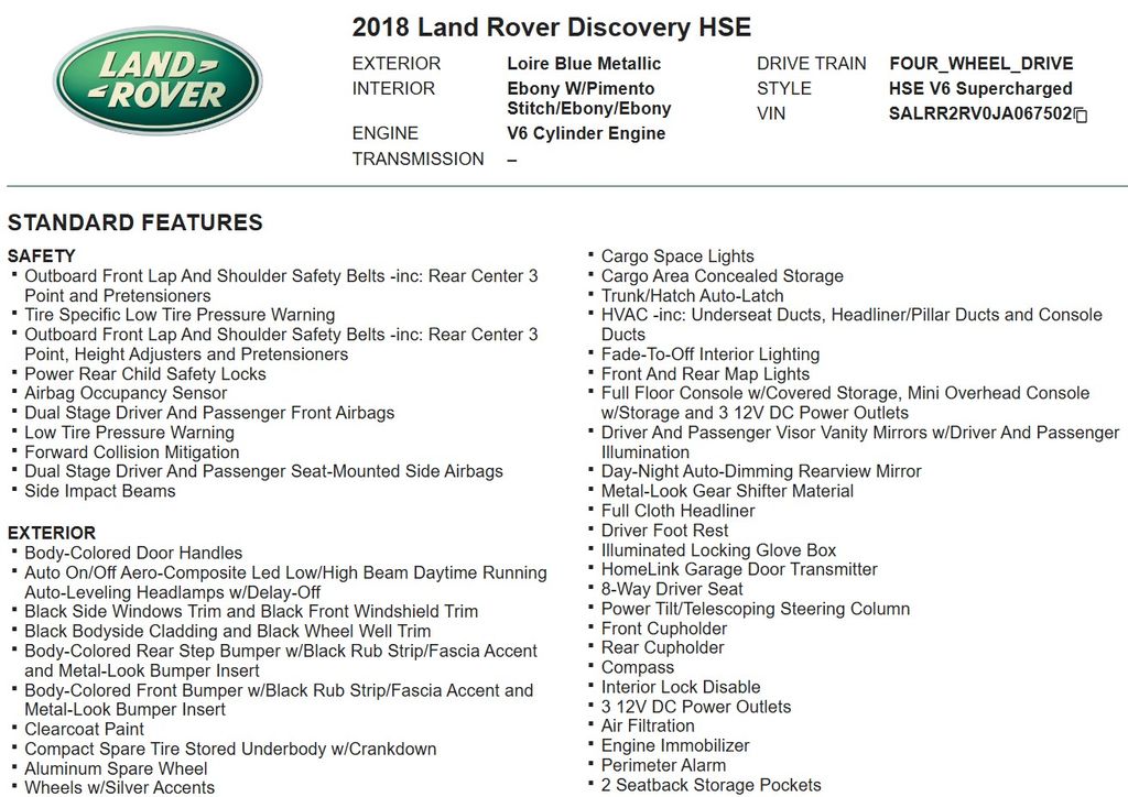 Discover the ultimate in luxury, performance, and versatility with this exceptional 2018 Land Rover Discovery HSE. Schedule a test drive today and experience the difference for yourself.
