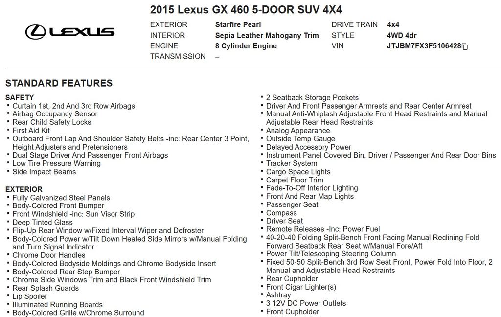 Discover the perfect blend of luxury, capability, and convenience in this stunning 2015 Lexus GX 460 4WD. Experience the unparalleled refinement and performance that only a Lexus can deliver. Schedule a test drive today and see for yourself why this GX is the ultimate SUV choice.