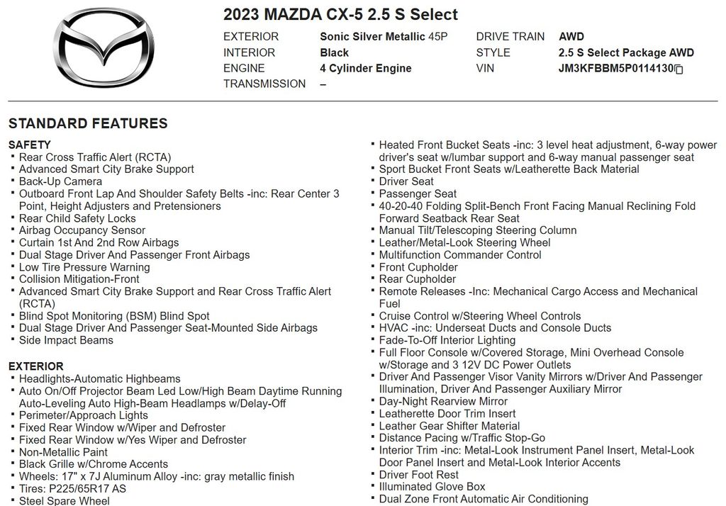 Experience the Exceptional 2023 Mazda CX-5 2.5 S Select Package