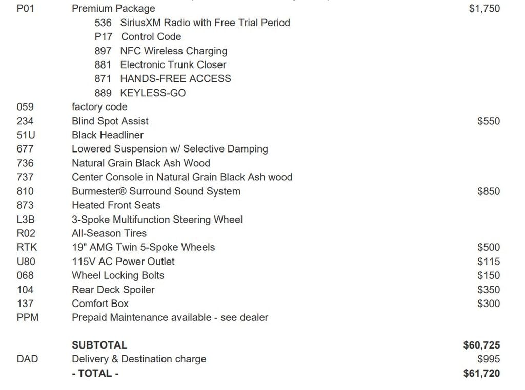 The AMG® Line Exterior, KEYLESS GO® Comfort Package, Parking Assistance Package, Premium 1 Package, Sport Interior, and Sport Package elevate this vehicle to a new level of sophistication. Standout features include the Burmester® Surround Sound System, SiriusXM Radio, Electric Trunk Closer, Blind Spot Assist, Brake Assist, AMG® Body Styling, Rear Spoiler, 115V AC Power Outlet, Active Parking Assist, Apple CarPlay®/Android Auto®, Garage Door Transmitter, NFC Wireless Charging, Sport Interior, Surround View Camera, and the stunning 19" AMG® Twin 5-Spoke Wheels with Black Accents.
