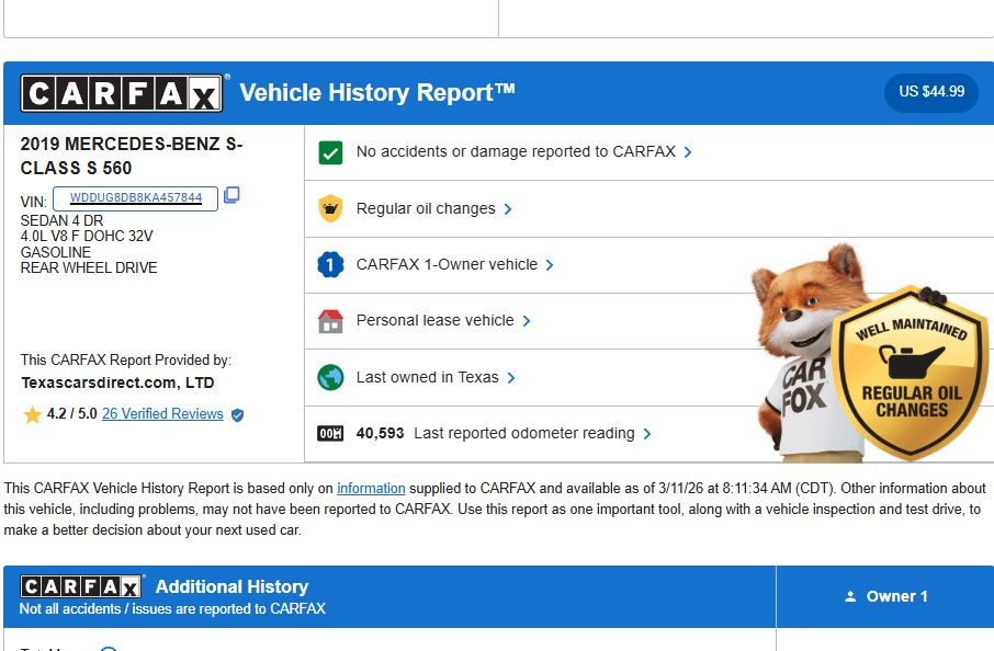 We invite you to experience the exceptional craftsmanship and uncompromising performance of this 2019 Mercedes-Benz S-Class S 560. We offer free Carfax vehicle history reports on our website, and our knowledgeable sales team is ready to assist you with any questions or concerns you may have.