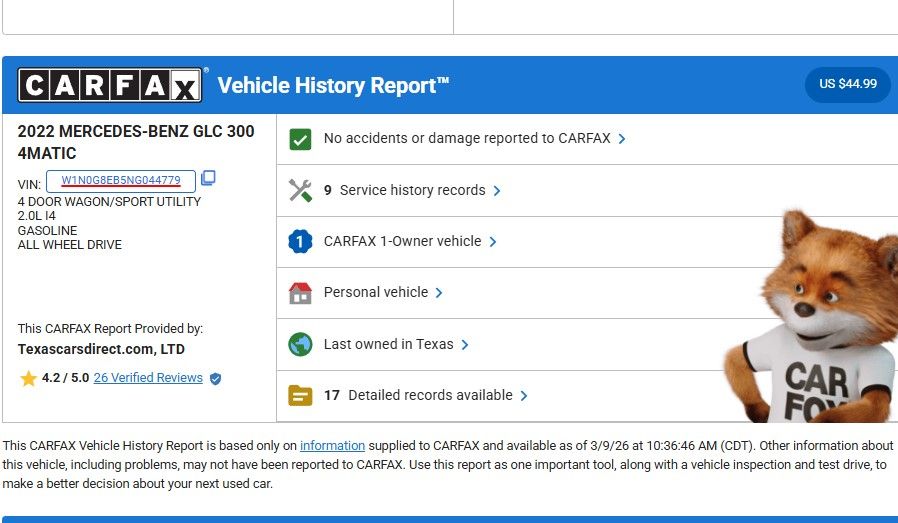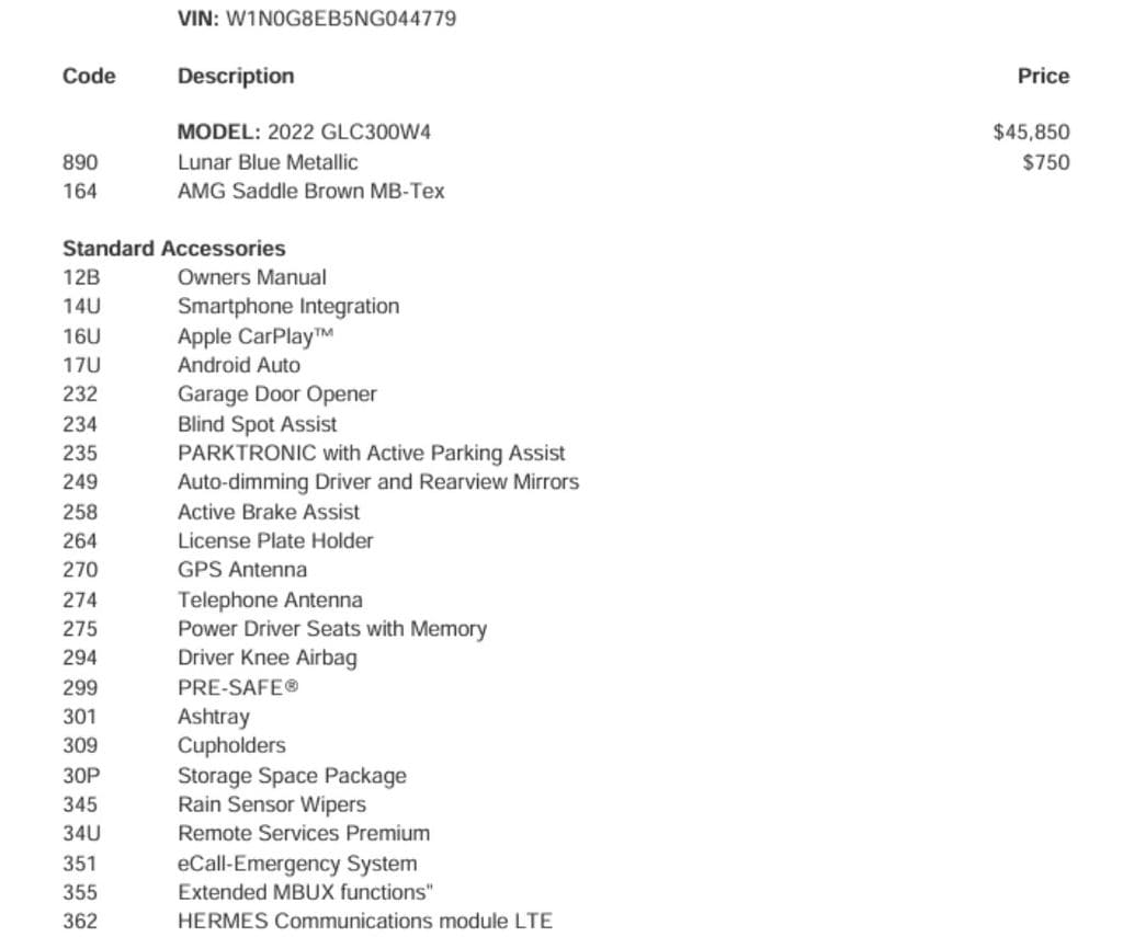 We understand that purchasing a vehicle is a significant investment, which is why we're committed to providing you with the utmost transparency and support throughout the process. This 2022 Mercedes-Benz GLC GLC 300 1-OWNER CLEAN CARFAX/PREM/AMG SPORT comes with the remainder of the factory warranty, giving you the peace of mind you deserve.