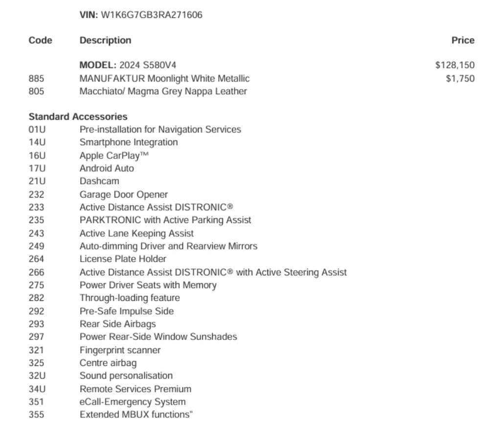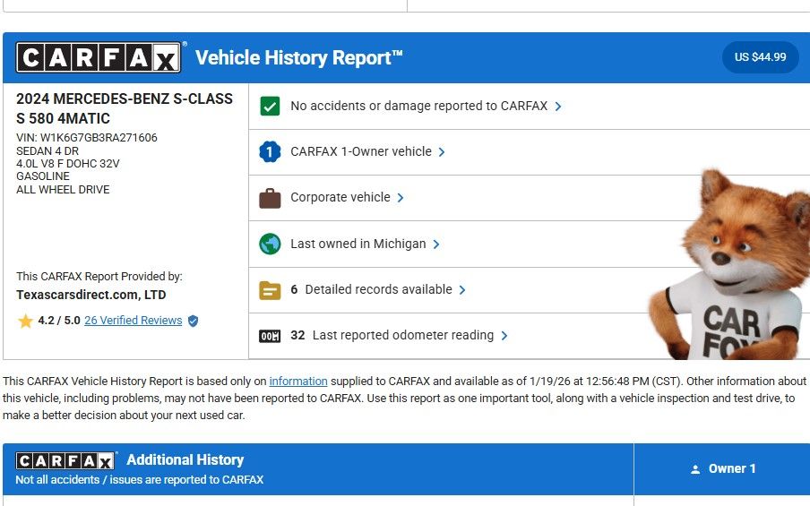 With a clean CARFAX history and low mileage of just 15,916, this 2024 Mercedes-Benz S-Class S 580 AWD/4WS represents an exceptional opportunity. Backed by the remaining factory warranty and pre-qualified for a 10-year/100,000-mile extended warranty, you can enjoy peace of mind and exceptional value.