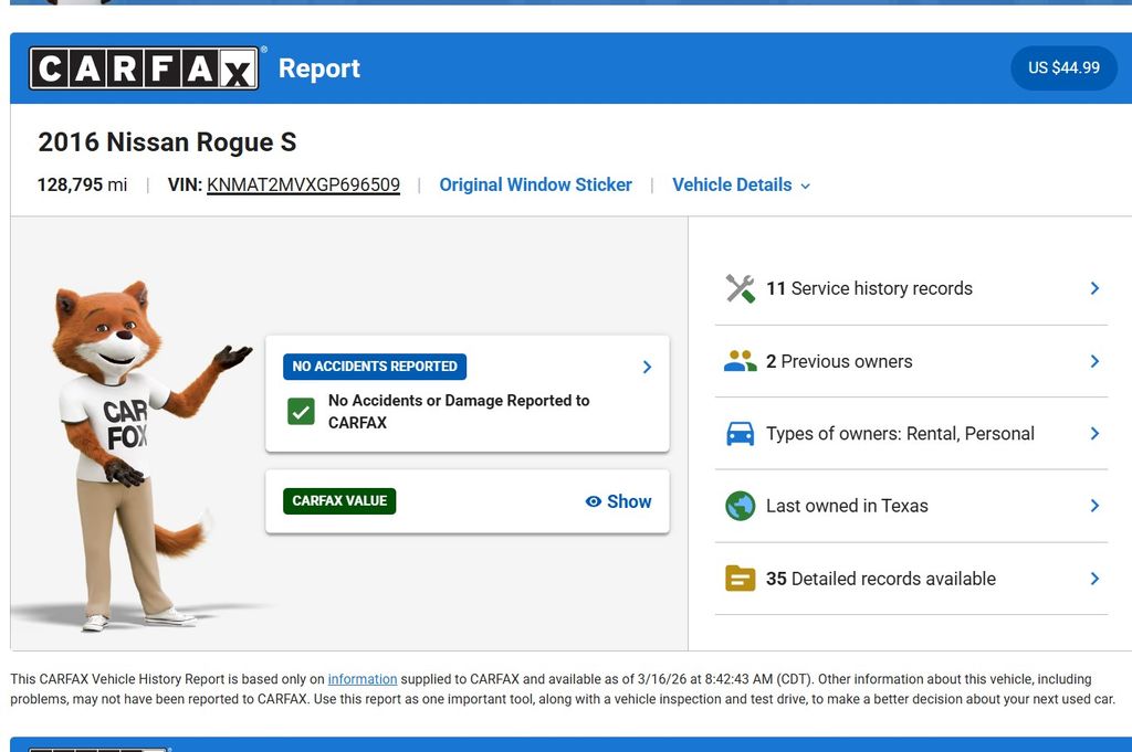 We offer free Carfax vehicle history reports on our website.