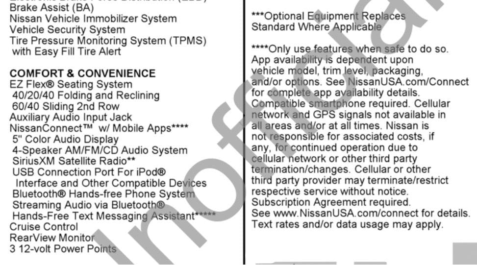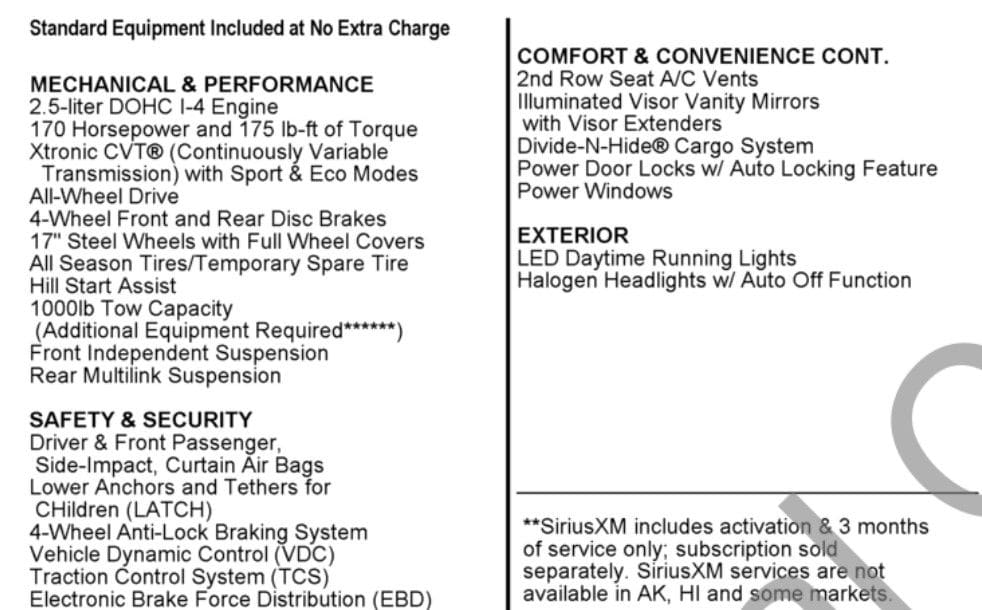 - AM/FM radio: SiriusXM
