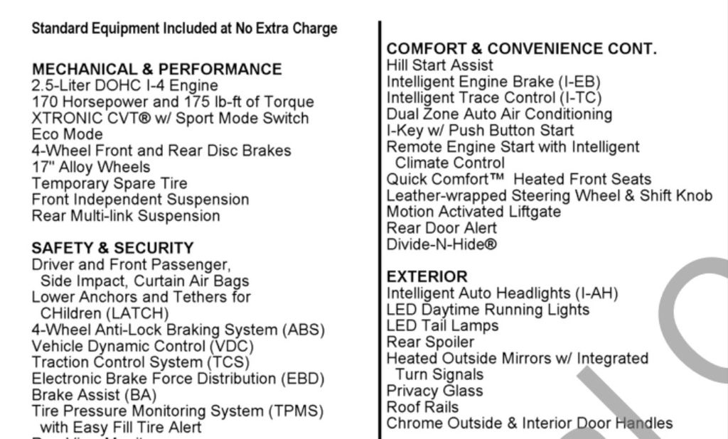 - Transmission: continuously variable automatic
