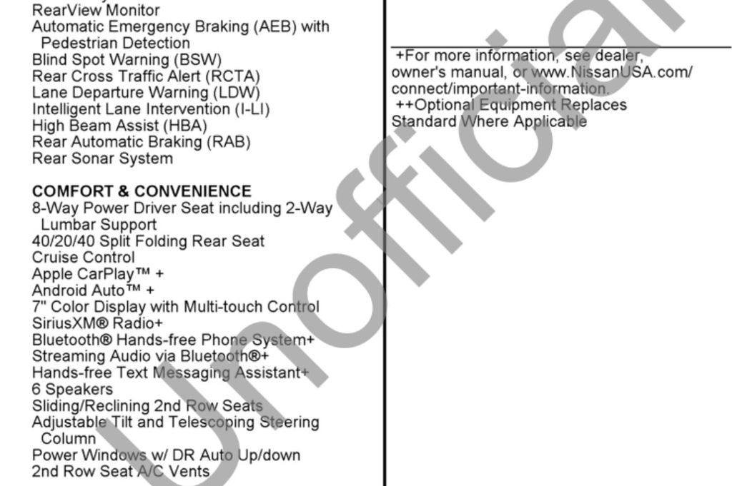 - Smart device integration: NissanConnect featuring Apple CarPlay and Android Auto